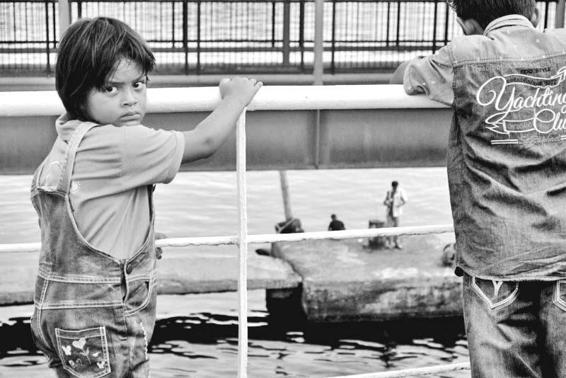 Anak-anak lokal berusia sekitar 8-12 tahun bergerombol di trestel ujung dermaga. Teriknya matahari, tak menyurutkan semangat mereka untuk menceburkan diri ke air laut yang jernih. Satu, dua tangan penumpang terjulur dari dekkapal sembari melemparkan uang koin. Atraksi salto dan berburu koin di dasar laut dari anak-anak Balohan menjadi tontonan pengunjung pulau Weh. Di satu sisi, anak-anak sebayanya yang berada di atas geladak kapal menyangga pipi mereka dengan kedua tangan. Menyaksikan anak-anak Balohan menyelam ke dasar laut, satau mengapung, bermain kecipak air.Terkadang, teriakan mereka bersaing dengan peluit penanda keberangkatan kapal. āLemparkan uang kertas,ā kata mereka sambil tengadah. Beberapa penumpang menyanggupi dengan syarat bahwa mereka harus berada di ujung trestel. Lagi, mereka berlomba salto ketika lembaran uang kertas melayang ketika kapal berderak menjauh dari pelabuhan Balohan. Teriakan gembira anak-anak Balohan bergaung ketika mendapatkan lembaran uang tersebut, dan lambaian tangan mengantar KMP BRR mengarungi selat antara pulau Sabang-Banda Aceh dua jam kemudian.