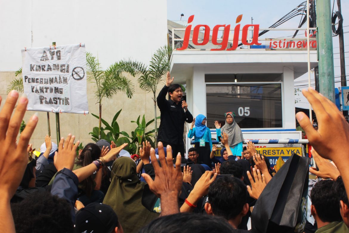 Sejak pukul 08.15 WIB massa aksi berjalan dari titik awal di McDonald’s, Jalan Sudirman hingga mencapai titik akhir di Tugu Jogja. Beberapa peserta menggunakan kostum dari bahan kardus dan botol plastik. Tak lupa, mereka juga menyampaikan pesan-pesan cinta lingkungan melalui imbauan dan poster-poster. Sembari berjalan, massa aksi membagikan tote bag pada pengendara yang berhenti serta pejalan kaki. Pembagian tote bag ini merupakan upaya untuk mengurangi limbah plastik.