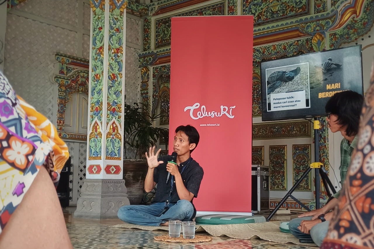 “Bahwa apa yang kita perjuangkan, kita menyelamatkan manusia dan itu ternyata berdampak juga untuk alamnya,” ungkap Daru ketika memaparkan harapannya terhadap konservasi penyu dalam diskusi Bincang Asik (BISIK): Siapa yang Perlu Kita Selamatkan, Manusia atau Alam? Kegiatan yang diinisiasi oleh komunitas TelusuRI ini dilaksanakan sebagai bagian dari kegiatan Ekspedisi Arah Singgah Makan Key Almig. Berlangsung selama kurang lebih dua jam, diskusi tersebut diselenggarakan di Omah Budoyo pada Sabtu (08-11). Diskusi tersebut menghadirkan Daru Aji Saputro, Ketua Yayasan Aksi Konservasi Yogyakarta (4K Yogyakarta), sebagai narasumber dan Muhammad Ulul Absor sebagai moderator.