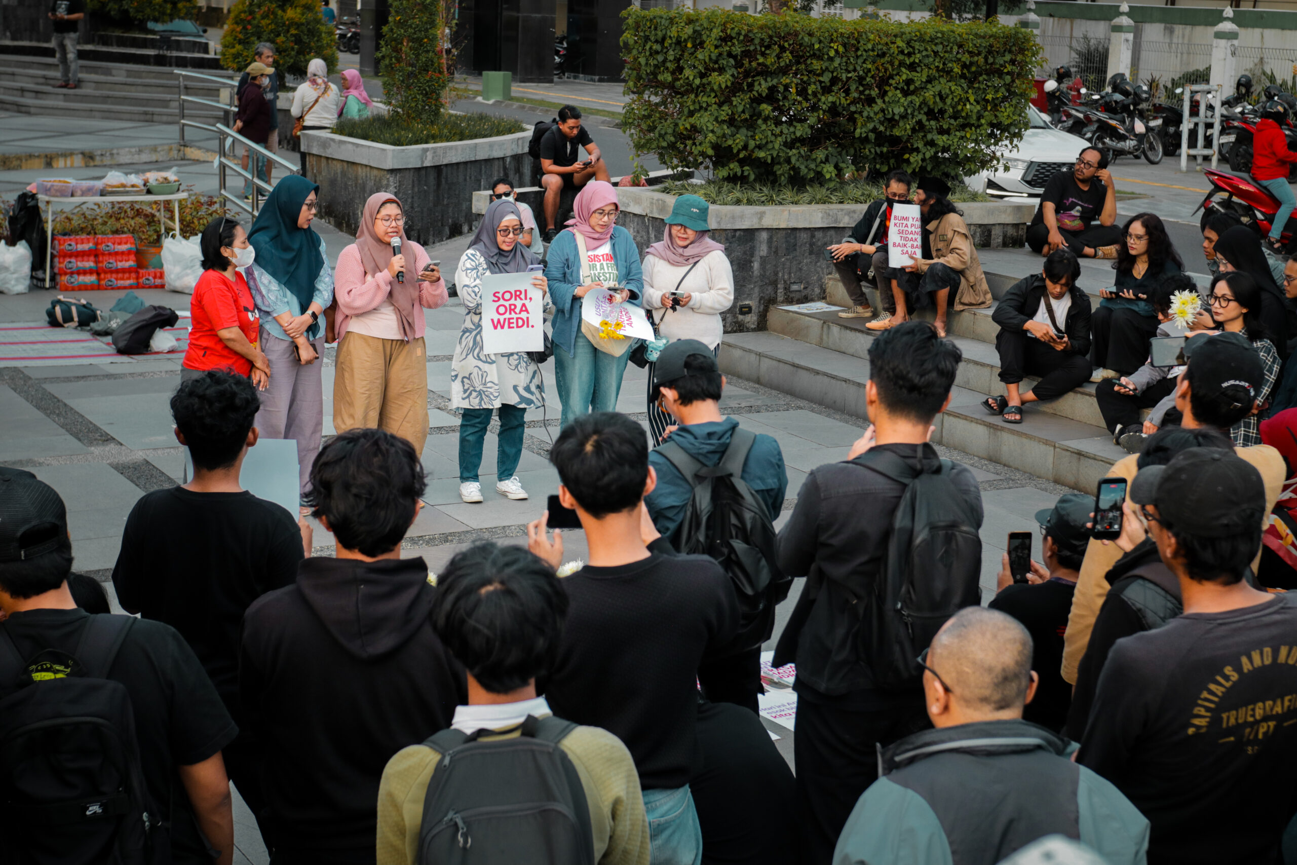 Petang hari menjelang berbuka puasa, Suara Ibu Indonesia mengadakan aksi solidaritas dan doa bersama pada Sabtu, (14-03) di Bundaran Universitas Gadjah Mada (UGM). Aksi yang dihadiri sejumlah elemen masyarakat ini diselenggarakan sebagai dukungan kepada Wakil Koordinator Komisi untuk Orang Hilang dan Korban Tindak Kekerasan (KontraS), Andrie Yunus. Sebelumnya, Andrie menjadi korban penyiraman air keras oleh orang tak dikenal setelah melakukan perekaman siniar di Kantor Yayasan Lembaga Bantuan Hukum (YLBHI), Jakarta, pada Jumat, (13-03) malam.
